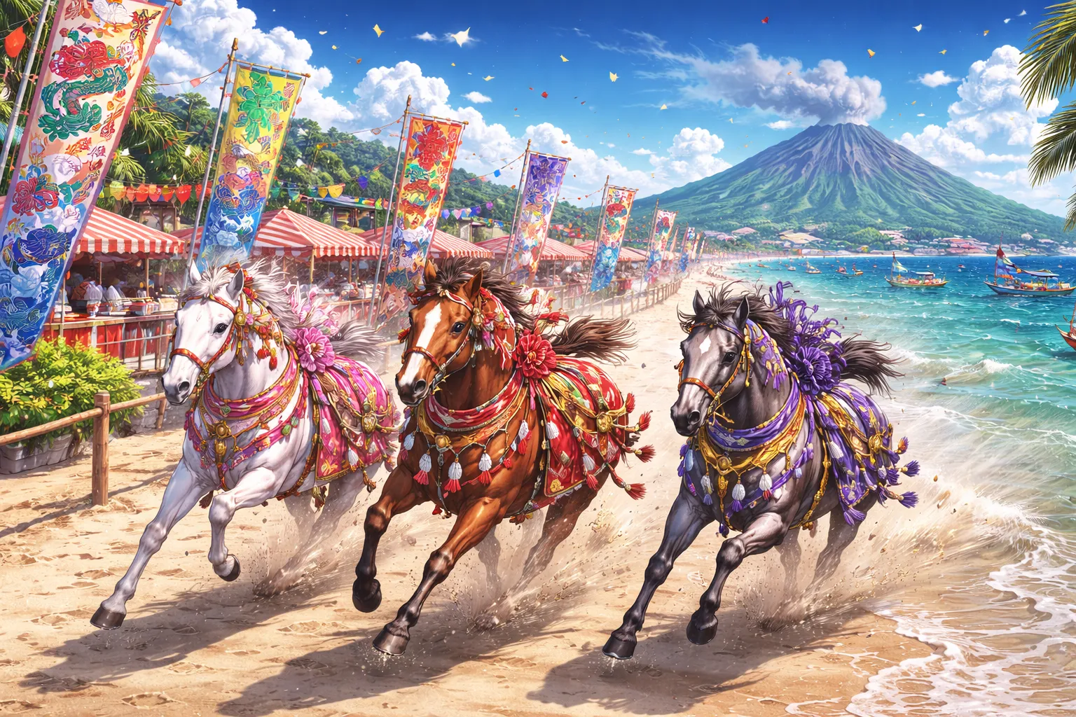 全国でも珍しい“砂浜を馬が駆け抜ける競馬大会”として知られ、迫力満点のレースとローカル感あふれる雰囲気が魅力です。