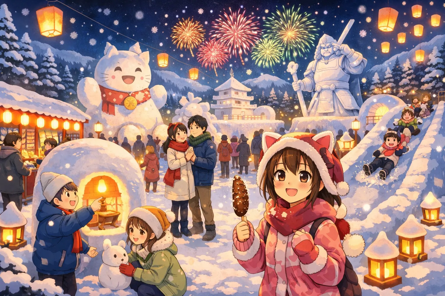 雪像展示や体験イベント、屋台グルメなど、幅広い楽しみ方が用意されています。